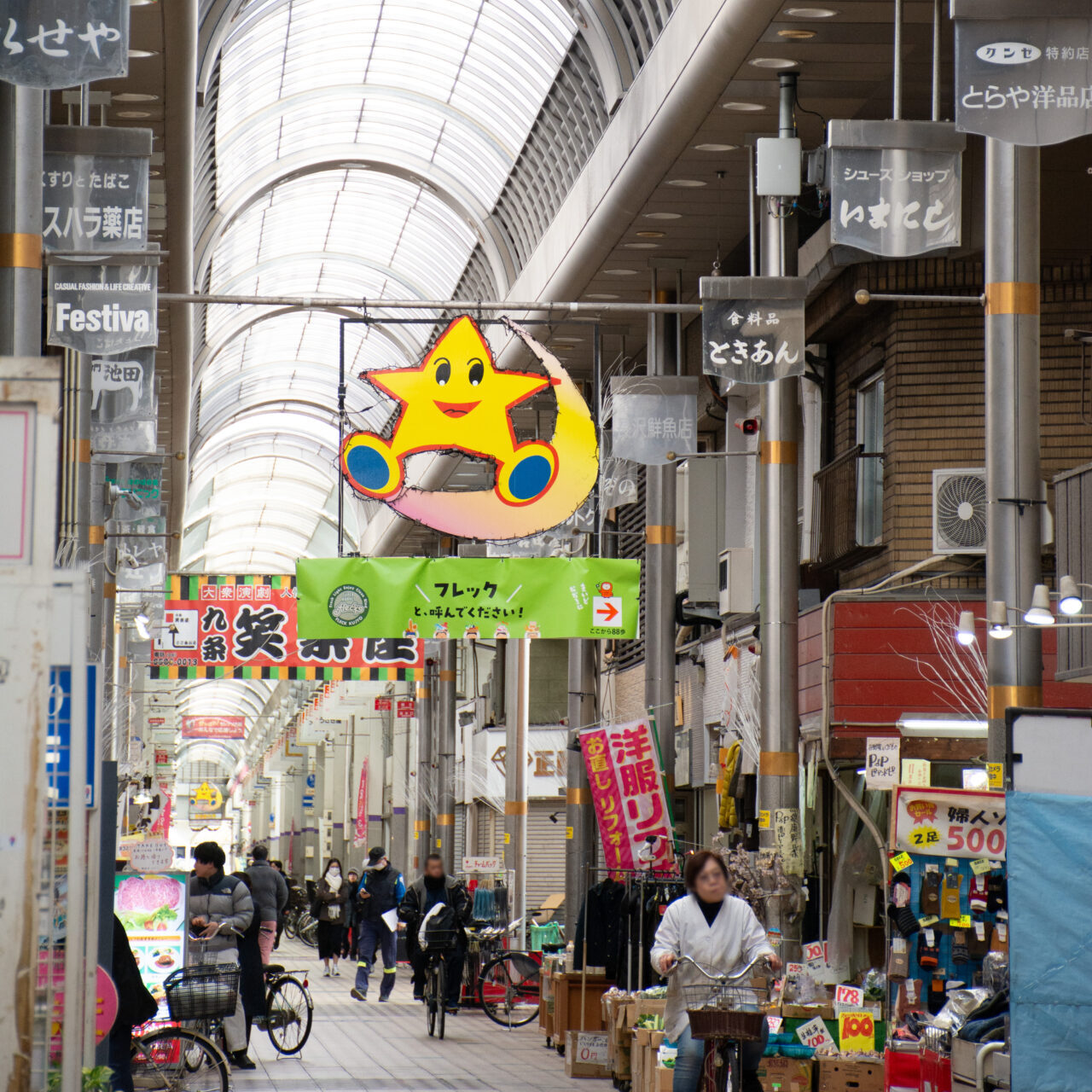 大阪市西区にあるスーパー「フレック九条」の、キララ九条商店街内に掲示する広告のデザインを行いました。