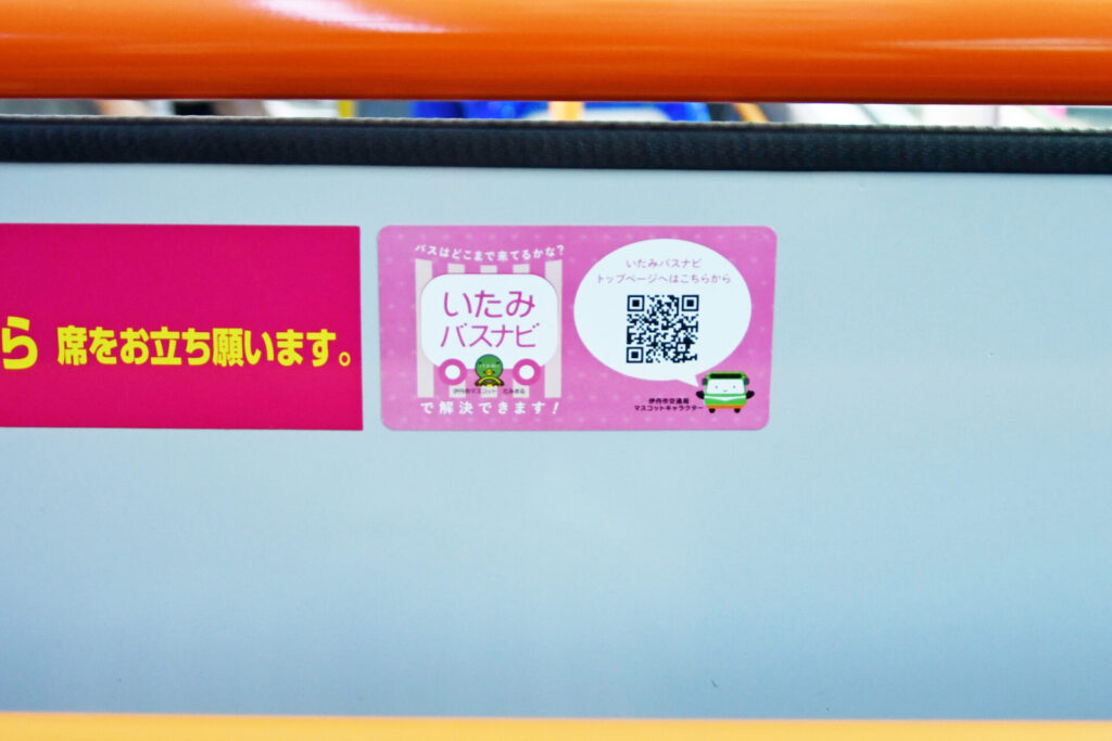 市バス混雑情報提供システム「いたみバスナビ」の利用を促進するための車内ポスターにマスコットキャラクターが登場する漫画を取り入れ、デザインしました。バス車内にて実物をご覧いただけます。