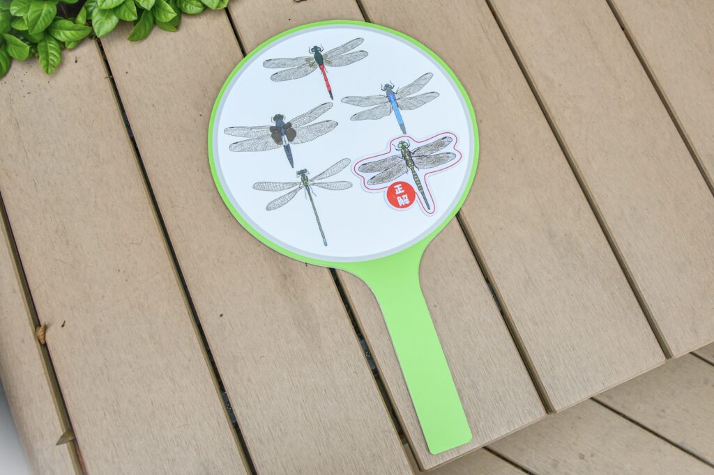 紙芝居披露の前の導入として、子どもたちに向けたトンボクイズのための虫眼鏡風のパネルも製作しました。紙芝居はイベント出展時などに披露していかれる予定です。