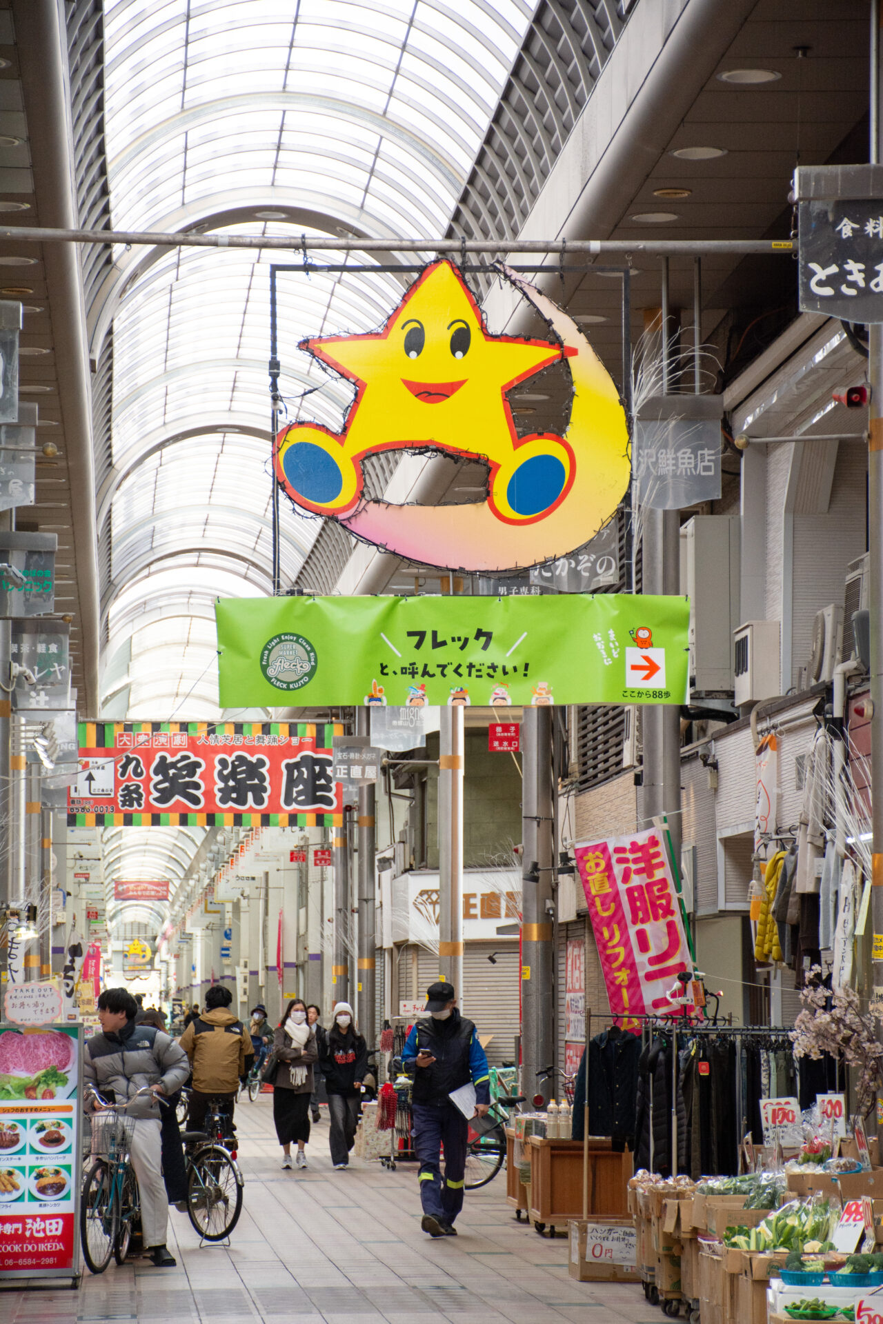 キララ九条商店街のアーケードに設置するサインもデザインしました。